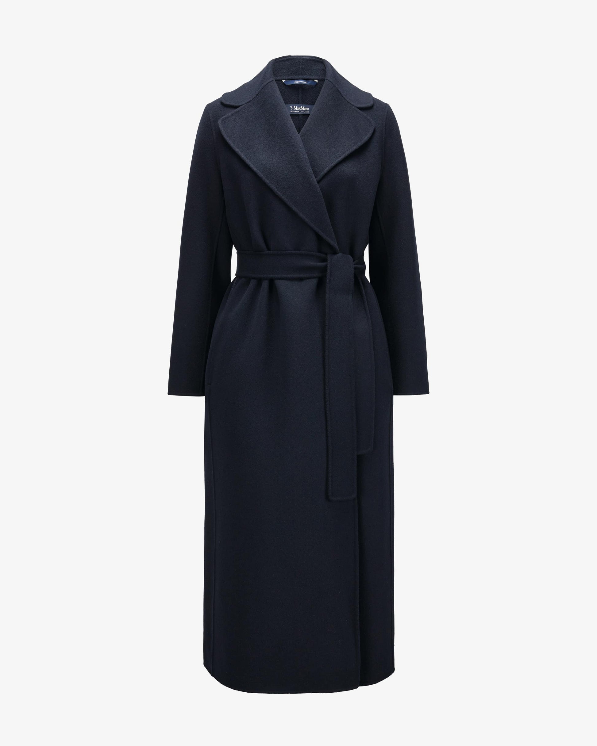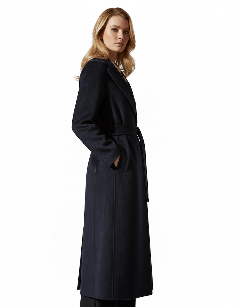 Poldo wool coat for women from 'S Max Mara in dark blue. The model is characterized by characterized particularly soft and high-quality virgin wool fabrication, while classic details skilfully classic details skilfully complete the look. At the same time, the detachable waistband adds a feminine touch to the overall look.